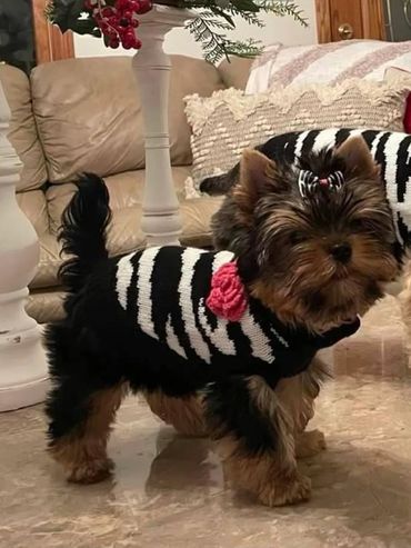 intelligence and looks! My veterinarians, vet tech & staff love to see the babies & adults for check-ups. They rave about the quality & health of our babies. Vet visits are often to ensure health and well being of our mommies, and best health for our newborn babies. Our commitment to the yorkie breed and our customers is unwavering, and we strive to provide a wonderful experience for everyone involved. My sweet babies are well-adjusted for a easy transition from are home to yours. As they are a delicate breed and am always concerned, about the home they will be going too. To see more about Irresistible Yorkies visit our About Us page! For the customer that want it all you have come to the right place!