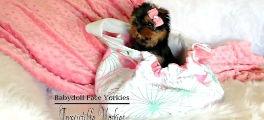 Here at Irresistible Yorkies we specialize for perfection. We have been raising "Extreme Baby Doll Yorkies" for 30 years now and strive for HEALTH, CALMNESS, INTELLIGENCE, STRUCTURE, QUALITY. Our babies are very loving & personable because they are handled everyday and loved on from the time they are born. The adults are Baby Doll Face Yorkie with a calm & loving demeanor. Our parents are all tested, & examined for over all health. As we truly care about what we produce. We are dedicated to breeding "Extreme Baby Doll Yorkies" that are healthy, and live a long happy healthy life. We carefully select our breeding pairs based on a variety of factors, Our babies reflect the unique personality and loving demeanor, I am told this often by my special customers. This is what has made us #1 in Repeat Customers & 5 Star Rating in USA! I love to see all the updated pictures of my babies I've produced. and how well they are doing,